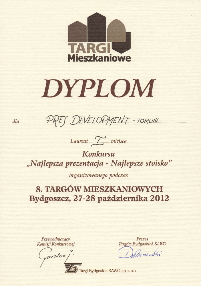 Dobiegły końca IX Targi Budownictwa i Targi Mieszkaniowe „OD DZIAŁKI PO DOM” 2014 w Toruniu. W dniach 29-30 marca w Centrum Targowym "PARK" można było zapoznać się m.in. z aktualną ofertą mieszkaniową wszystkich wiodących firm deweloperskich w Toruniu. Oczywiście w tym gronie nie mogło zabraknąć naszej firmy, która dotychczas w Toruniu może być kojarzona z Osiedlem Sztuk Pięknych jako współwłaściciel inwestora - firmy MNP PRES Invest.